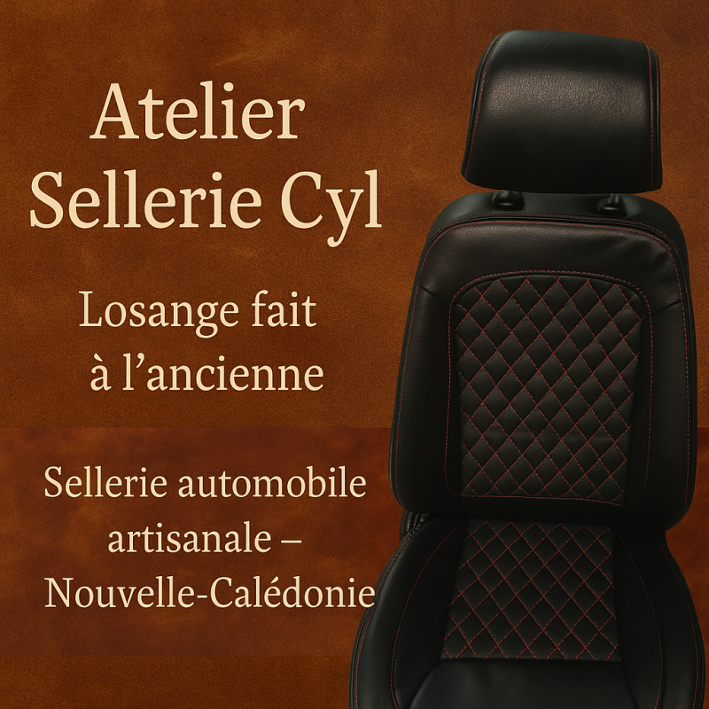 -------------------- Bienvenue sur l’Atelier Sellerie Cyl 🌿 Artisanat local – Sellerie automobile sur mesure – Nouvelle-Calédonie Je suis Cyl, artisane sellière passionnée, spécialisée dans la rénovation et la personnalisation d’intérieurs automobiles : sièges, ciels de toit, garnitures de portes, volants, sellerie moto, engins, etc. 📍 Basée en Nouvelle-Calédonie, je vous propose un travail soigné, des matériaux certifiés, et des finitions haut de gamme, pour véhicules anciens ou récents.
